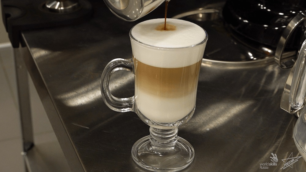Соотношение компонентов: 1 часть эспрессо (30 мл) на 4–6 частей молочной составляющей (200–250 мл).