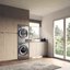 Габариты техники составляют 85×59,5×58,5 см. С открытой дверцей глубина достигает 94,2 см, угол открытия — 110°, диаметр люка — 31 см. Модель подходит для стандартной установки и может быть совмещена с сушильным аппаратом той же серии в единую колонну. Чугунные противовесы и регулируемые ножки обеспечивают устойчивость на любой поверхности.