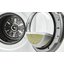 Машина оснащена конденсационной сушкой с тепловым насосом — оптимальной по расходу электроэнергии и по длительности. По замкнутому контуру внутри машины перемещается воздух, степень влажности и температура которого меняется циклически. Горячий воздух впитывает влагу, высушивая белье, затем охлаждается, а влага оседает на испарителе. Конденсат стекает в отдельную емкость, а затем в канализацию. Температура осушенного воздуха снова увеличивается, и цикл повторяется.