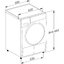 Модель имеет стандартные габариты: высота составляет 85 см, ширина — 59.6 см, глубина — 64.3 см. Универсальный дизайн, в котором сочетаются белый и черный цвета, удачно впишется в любой интерьер. Допускается максимальная загрузка 9 кг белья. Дверца открывается на 155°, что облегчает загрузку объемных вещей.