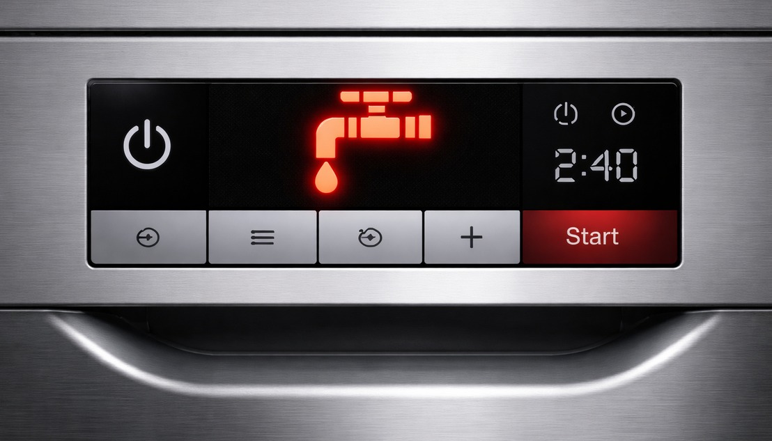 Как исправить ошибку посудомоечной машины Bosch, если на дисплее горит значок «краник»? Этот символ обозначает, что в бак посудомойки не поступает вода.