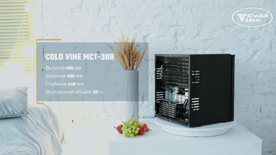 Meyvel MV9-KBT1 — монотемпературная модель высотой 82 см и шириной всего 15 см, пригодная для размещения под столешницей. Винный шкаф с компрессорным охлаждением и автоматической системой размораживания в корпусе черного цвета, с дверцей со стеклопакетом в черной рамке.