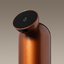 Сенсорный дозатор для жидкого мыла с дисплеем и тремя режимами подачи. Стильный металлический корпус оранжевого цвета.