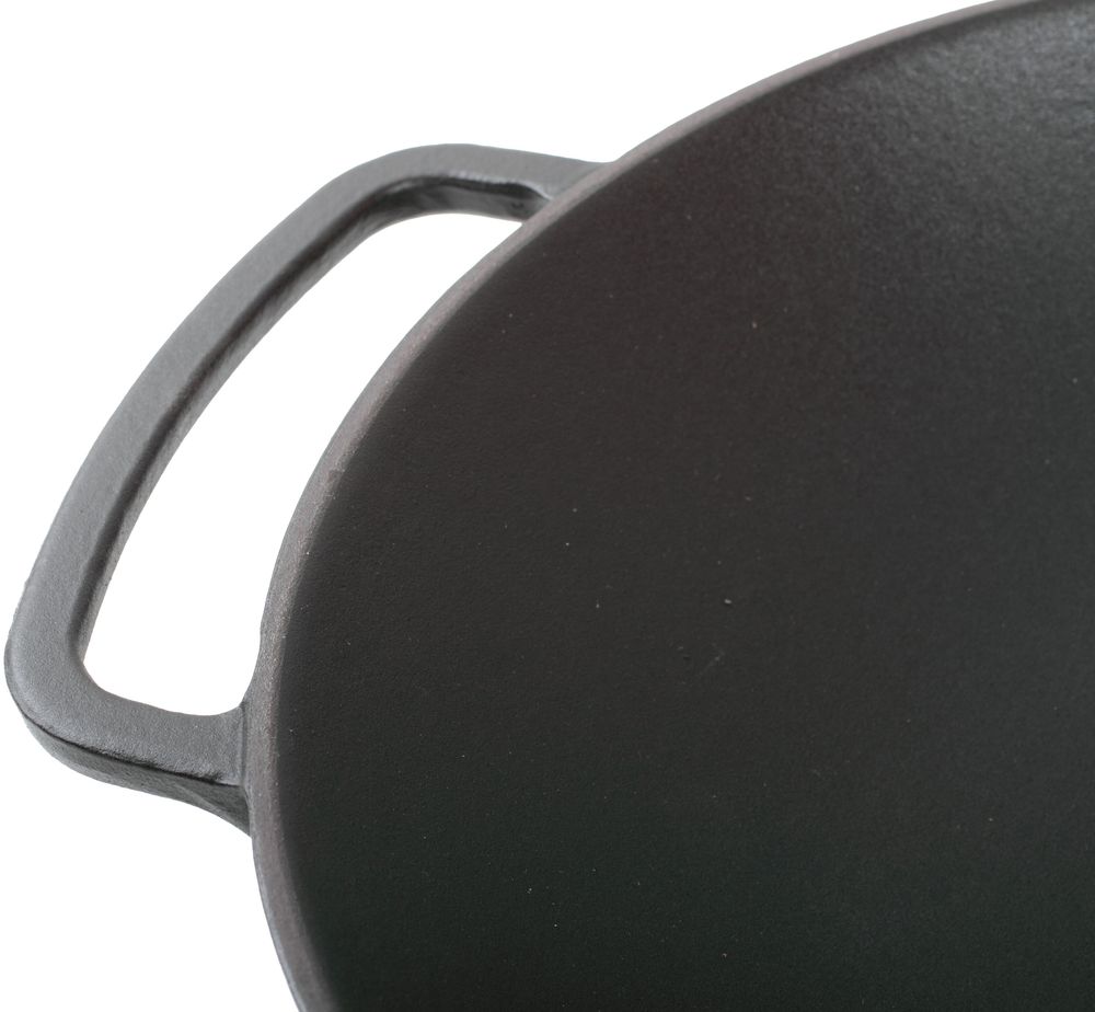 Korting K 1128 — чугунная WOK-сковорода, пригодная для мытья в посудомоечной машине. Конструкция с дном плоским снаружи и круглым внутри идеально подходит для обжарки на сильном огне и одновременного приготовления разных ингредиентов.