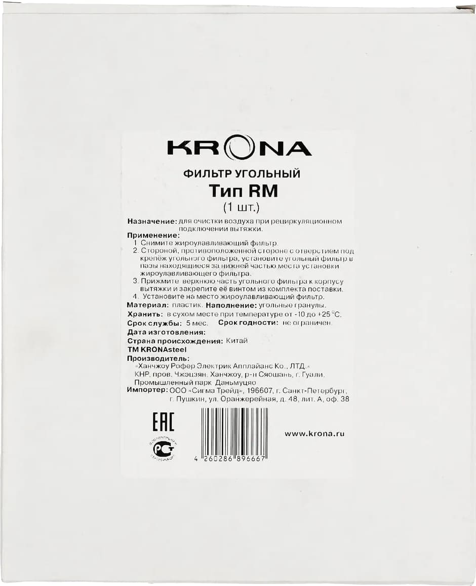 Фильтр угольный Krona тип RM КА-00001032 в Тюмени