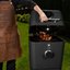 Уличный угольный гриль в лаконичном черном корпусе. В нем можно обжаривать мясо, овощи и даже запекать пиццу на специальном камне (уже в комплекте). Сенсорная панель управления простая и наглядная.