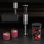 Блендер Bork B784 — погружная модель мощностью 320 Вт и весом всего 2,5 кг. Корпус серебристого цвета изготовлен из литого алюминия, погружная часть блендера — из прочной, устойчивой к любым воздействиям нержавеющей стали. Комфортному использованию способствует эргономичная нескользящая рукоятка. В комплект входит чаша для измельчения объемом 1 литр, изготовленная из нетоксичного пластика. Пять скоростей работы предназначаются для измельчения различных продуктов. Устройство может работать в режимах измельчения или смешивания: для особо твердых продуктов предназначается турбо-режим. Для плавной регулировки скорости вращения служат кнопки на корпусе. В комплект насадок с надежным магнитным креплением входят венчик для взбивания и насадка-измельчитель. Для хранения предусмотрена удобная подставка.