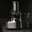 Стационарный — в основании расположен мотор, закрытый корпусом (иногда с панелью управления), сверху установлена чаша. Разные ножи и насадки позволяют как измельчать твердые продукты, так и смешивать жидкости. По большей части прибор работает автономно, поэтому вам не нужно прикладывать усилия.