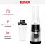 Стационарный блендер Bosch позволяет готовить смузи, коктейли, смешивать соусы и заправки, измельчать продукты до состояния пюре и многое другое. Его конструкция подразумевает автономную работу — вам нужно только положить овощи или фрукты и выбрать режим. Корпус сделан в основном из металла, что повышает надежность прибора. Он может как влиться в общую гамму интерьера, так и стать ярким акцентом; доминирующий цвет — черный. Благодаря специальным нескользящим ножкам блендер сохраняет устойчивость даже на высоких оборотах.