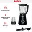 Стационарный блендер Bosch позволяет готовить смузи, коктейли, смешивать соусы и заправки, измельчать продукты до состояния пюре и многое другое. Его конструкция подразумевает автономную работу — вам нужно только положить овощи или фрукты и выбрать режим. Корпус сделан в основном из пластика, что уменьшает вес прибора. Он может как влиться в общую гамму интерьера, так и стать ярким акцентом; доминирующий цвет — черный. Благодаря специальным нескользящим ножкам блендер сохраняет устойчивость даже на высоких оборотах.