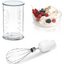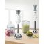 Погружной блендер Bosch позволяет готовить смузи, коктейли, смешивать соусы и заправки и многое другое. Такая конструкция требует вашего участия — нужно держать рукоятку с насадкой и контролировать направление движения. Плюс в том, что можно использовать ее прямо в кастрюле, когда готовите, например, суп-пюре. Корпус сделан в основном из пластика, что уменьшает вес прибора. Он может как влиться в общую гамму интерьера, так и стать ярким акцентом; доминирующий цвет — белый.