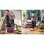 Погружной блендер Bosch позволяет готовить смузи, коктейли, смешивать соусы и заправки и многое другое. Такая конструкция требует вашего участия — нужно держать рукоятку с насадкой и контролировать направление движения. Плюс в том, что можно использовать ее прямо в кастрюле, когда готовите, например, суп-пюре. Корпус сделан в основном из пластика, что уменьшает вес прибора. Он может как влиться в общую гамму интерьера, так и стать ярким акцентом; доминирующий цвет — черный.