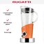 Стационарный блендер Bugatti позволяет готовить смузи, коктейли, смешивать соусы и заправки, измельчать продукты до состояния пюре и многое другое. Его конструкция подразумевает автономную работу — вам нужно только положить овощи или фрукты и выбрать режим. Корпус сделан в основном из металла, что повышает надежность прибора. Он может как влиться в общую гамму интерьера, так и стать ярким акцентом; доминирующий цвет — оранжевый.
