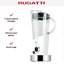 Стационарный блендер Bugatti позволяет готовить смузи, коктейли, смешивать соусы и заправки, измельчать продукты до состояния пюре и многое другое. Его конструкция подразумевает автономную работу — вам нужно только положить овощи или фрукты и выбрать режим. Корпус сделан в основном из металла, что повышает надежность прибора. Он может как влиться в общую гамму интерьера, так и стать ярким акцентом; доминирующий цвет — белый.