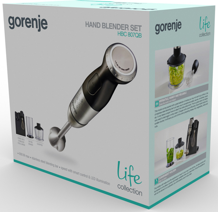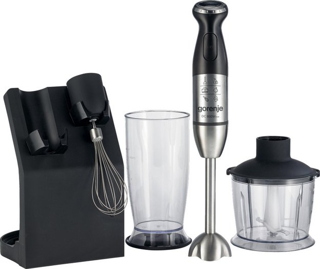Погружной блендер Gorenje позволяет готовить смузи, коктейли, смешивать соусы и заправки и многое другое. Такая конструкция требует вашего участия — нужно держать рукоятку с насадкой и контролировать направление движения. Плюс в том, что можно использовать ее прямо в кастрюле, когда готовите, например, суп-пюре. Он может как влиться в общую гамму интерьера, так и стать ярким акцентом; доминирующий цвет — черный. Благодаря специальным нескользящим ножкам блендер сохраняет устойчивость даже на высоких оборотах.