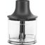 Корпус выполнен из прочного пластика с матовым чёрным покрытием, что придаёт прибору современный, сдержанный и премиальный вид. Погружная часть изготовлена из нержавеющей стали, устойчивой к коррозии и механическим повреждениям, что гарантирует долговечность и безопасность при контакте с пищевыми продуктами. В комплект входят две практичные ёмкости: чаша для измельчения объёмом 0,6 литра и мерный стакан на 1 литр — обе из качественного пластика, устойчивого к царапинам и легко очищаемого.