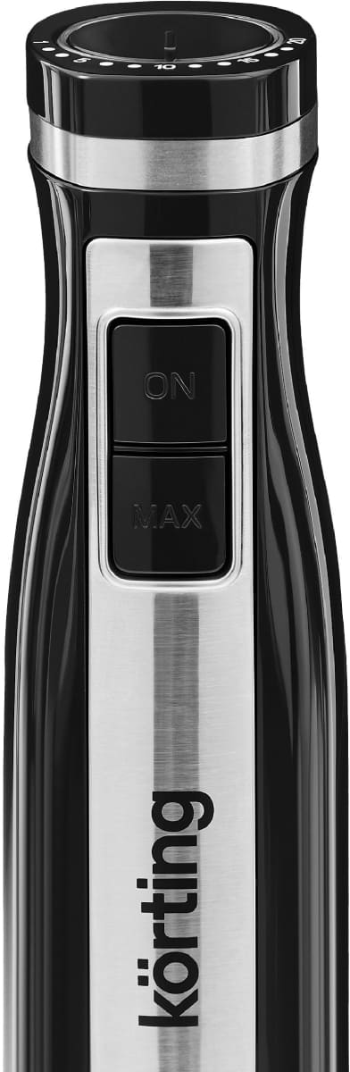 Погружной блендер Korting позволяет готовить смузи, коктейли, смешивать соусы и заправки и многое другое. Такая конструкция требует вашего участия — нужно держать рукоятку с насадкой и контролировать направление движения. Плюс в том, что можно использовать ее прямо в кастрюле, когда готовите, например, суп-пюре. Он может как влиться в общую гамму интерьера, так и стать ярким акцентом; доминирующий цвет — черный.