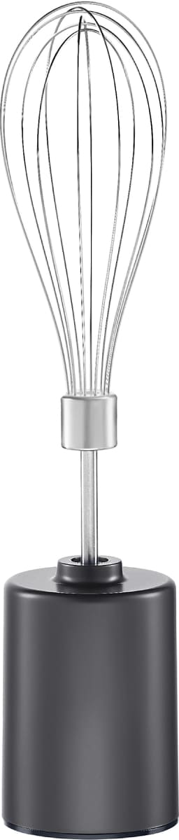 Погружной — мотор расположен в рукоятке, на конце которой есть насадка с венчиком или ножами. Вы опускаете ее в емкость и измельчаете продукты, удерживая прибор на месте, нажимая или проводя по кругу.