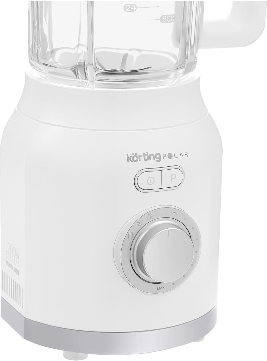 Стационарный блендер Korting позволяет готовить смузи, коктейли, смешивать соусы и заправки, измельчать продукты до состояния пюре и многое другое. Его конструкция подразумевает автономную работу — вам нужно только положить овощи или фрукты и выбрать режим. Он может как влиться в общую гамму интерьера, так и стать ярким акцентом; доминирующий цвет — белый. Благодаря специальным нескользящим ножкам блендер сохраняет устойчивость даже на высоких оборотах.