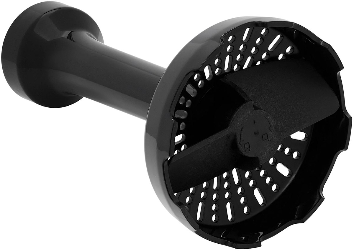 Погружной блендер KRONA позволяет готовить смузи, коктейли, смешивать соусы и заправки и многое другое. Такая конструкция требует вашего участия — нужно держать рукоятку с насадкой и контролировать направление движения. Плюс в том, что можно использовать ее прямо в кастрюле, когда готовите, например, суп-пюре. Корпус сделан в основном из пластика, что уменьшает вес прибора. Он может как влиться в общую гамму интерьера, так и стать ярким акцентом; доминирующий цвет — черный/нержавеющая сталь.