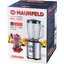 Стационарный блендер Maunfeld позволяет готовить смузи, коктейли, смешивать соусы и заправки, измельчать продукты до состояния пюре и многое другое. Его конструкция подразумевает автономную работу — вам нужно только положить овощи или фрукты и выбрать режим. Корпус сделан в основном из металла, что повышает надежность прибора. Он может как влиться в общую гамму интерьера, так и стать ярким акцентом; доминирующий цвет — нержавеющая сталь. Благодаря специальным нескользящим ножкам блендер сохраняет устойчивость даже на высоких оборотах.