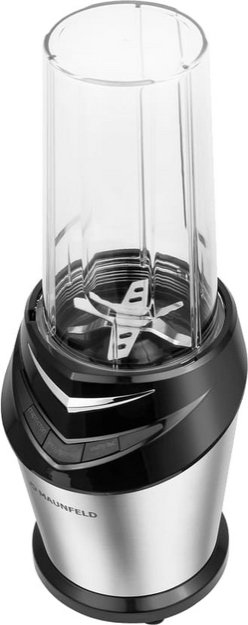 Стационарный блендер Maunfeld позволяет готовить смузи, коктейли, смешивать соусы и заправки, измельчать продукты до состояния пюре и многое другое. Его конструкция подразумевает автономную работу — вам нужно только положить овощи или фрукты и выбрать режим. Корпус сделан в основном из металла, что повышает надежность прибора. Он может как влиться в общую гамму интерьера, так и стать ярким акцентом; доминирующий цвет — нержавеющая сталь. Благодаря специальным нескользящим ножкам блендер сохраняет устойчивость даже на высоких оборотах.
