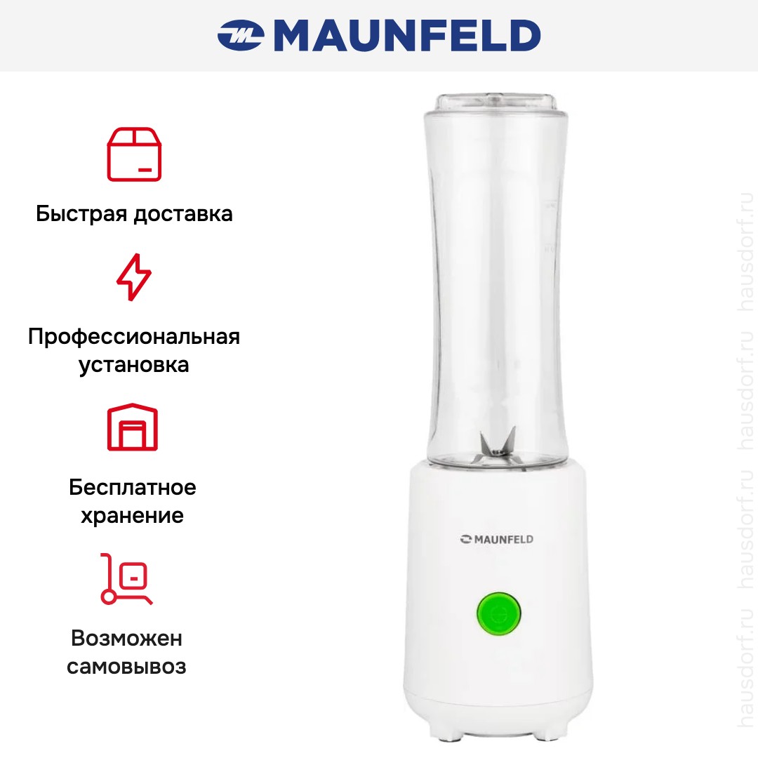 Стационарный блендер Maunfeld позволяет готовить смузи, коктейли, смешивать соусы и заправки, измельчать продукты до состояния пюре и многое другое. Его конструкция подразумевает автономную работу — вам нужно только положить овощи или фрукты и выбрать режим. Корпус сделан в основном из пластика, что уменьшает вес прибора. Он может как влиться в общую гамму интерьера, так и стать ярким акцентом; доминирующий цвет — белый.
