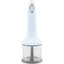 Блендер имеет в комплектации чашу для измельчения, собственно, сам измельчитель, венчик и насадку для пюре. Погружная часть сделана из нержавеющей стали. Благодаря системе FlowBlend блендер может работать с продуктами разной степени плотности, ножи легко моются и их не нужно затачивать. На пластиковой основе есть кнопка для переключения скоростей, а также кнопка для работы в Turbo-режиме.Тритановая чаша с крышкой оснащена маркировкой в литрах и унциях, что делает еще более удобным её использование.