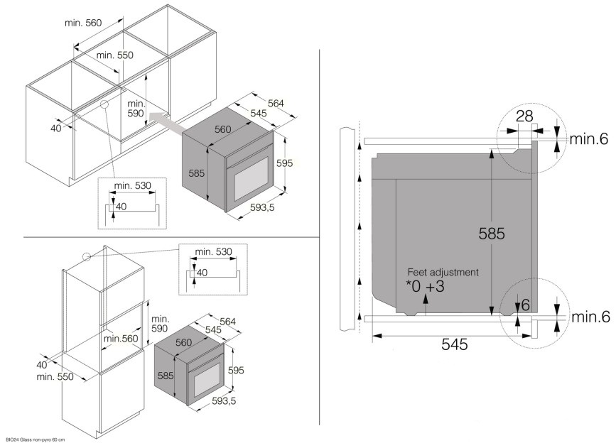 Ко всем моделям прилагаются подробные инструкции по установке, где указаны точные размеры ниши для каждой конкретной духовки.