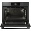 Управление сенсорное, понятное и аккуратно размещено рядом с цветным TFT‑дисплеем. Электронные часы и таймер помогают планировать процесс, а сенсорные кнопки дают быстрый доступ к режимам. Внутренняя камера объёмом 51 л компактна, но функциональна: четыре уровня приготовления и четыре набора направляющих позволяют одновременно готовить несколько блюд. Телескопические направляющие полного выдвижения с тормозом обеспечивают безопасное извлечение противней, а складной решёт и термощуп входят в комплект для точной готовности пищи.