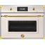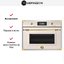 Выглядит как компактная модель в слоновой кости цвета с дизайнерскими акцентами в стиле Heritage: золотая фурнитура и металлическая ручка подчеркивают классическую эстетики, а откидная дверца с двумя стеклами и доводчиком делает эксплуатацию плавной и понятной. Габариты 45.5×59.4-59.5×54.2 см и конструкция, рассчитанная на нишу 45×56×55 см, позволяют встраивать прибор в небольшие кухонные модули без ущерба внешней гарнитуре.