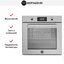 Удобство встраивания обеспечено стандартными габаритами 59,7×59,5×57,3 см и требуемой нишей 58—58,5×56—57×56—58 см. Доводчик дверцы обеспечивает мягкое закрытие, а съемное внутреннее стекло упрощает чистку. В комплекте вы найдете две решетки, эмалированный и глубокий противни, перфорированный лист и подставку под тарелку для разных задач приготовления.