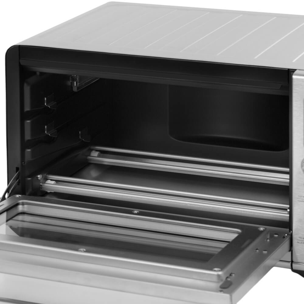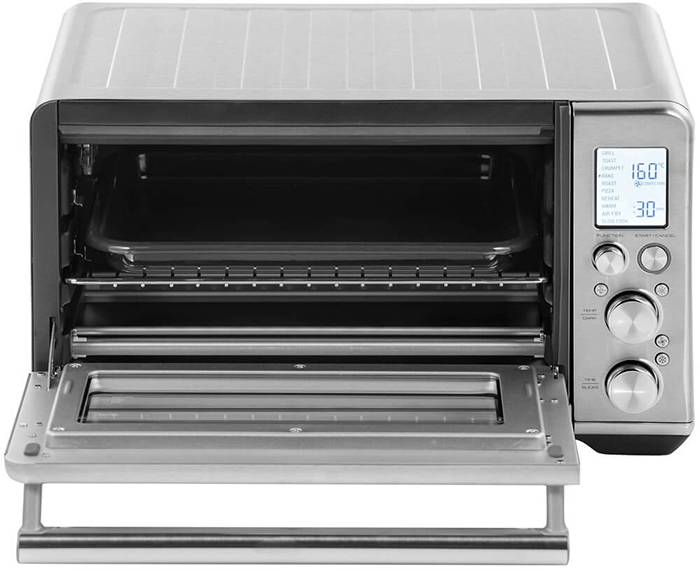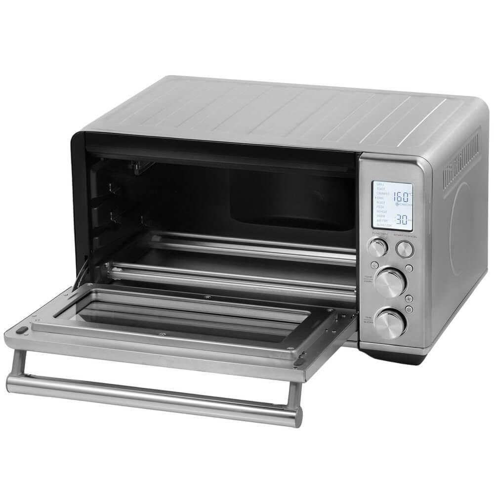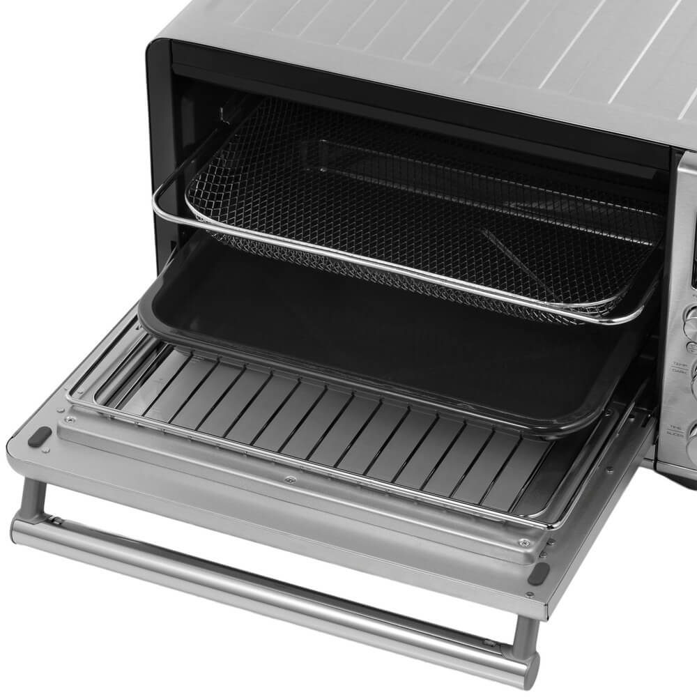 Компактные габариты — всего 28 см в высоту, 48 см в ширину и 40 см в глубину — позволяют разместить аэропечь даже в условиях ограниченного пространства, не жертвуя при этом внутренним объёмом и возможностями готовки. Благодаря продуманной конструкции прибор обеспечивает равномерную циркуляцию горячего воздуха, что даёт возможность запекать, жарить, готовить на гриле, разогревать и даже готовить по технологии «air fry» без избыточного количества масла.