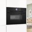 Духовой шкаф Bosch CMG936AB1S создан для тех, кто ценит сочетание строгого стиля и функциональности. Корпус в чёрном цвете выглядит современно и лаконично, он легко впишется в разные кухонные гарнитуры. Компактные габариты 45,5×59,4×54,8 см позволяют установить прибор в ограниченное пространство без потери возможностей. Откидная дверца с трёхслойным стеклом обеспечивает хорошую теплоизоляцию и безопасный доступ к камере.