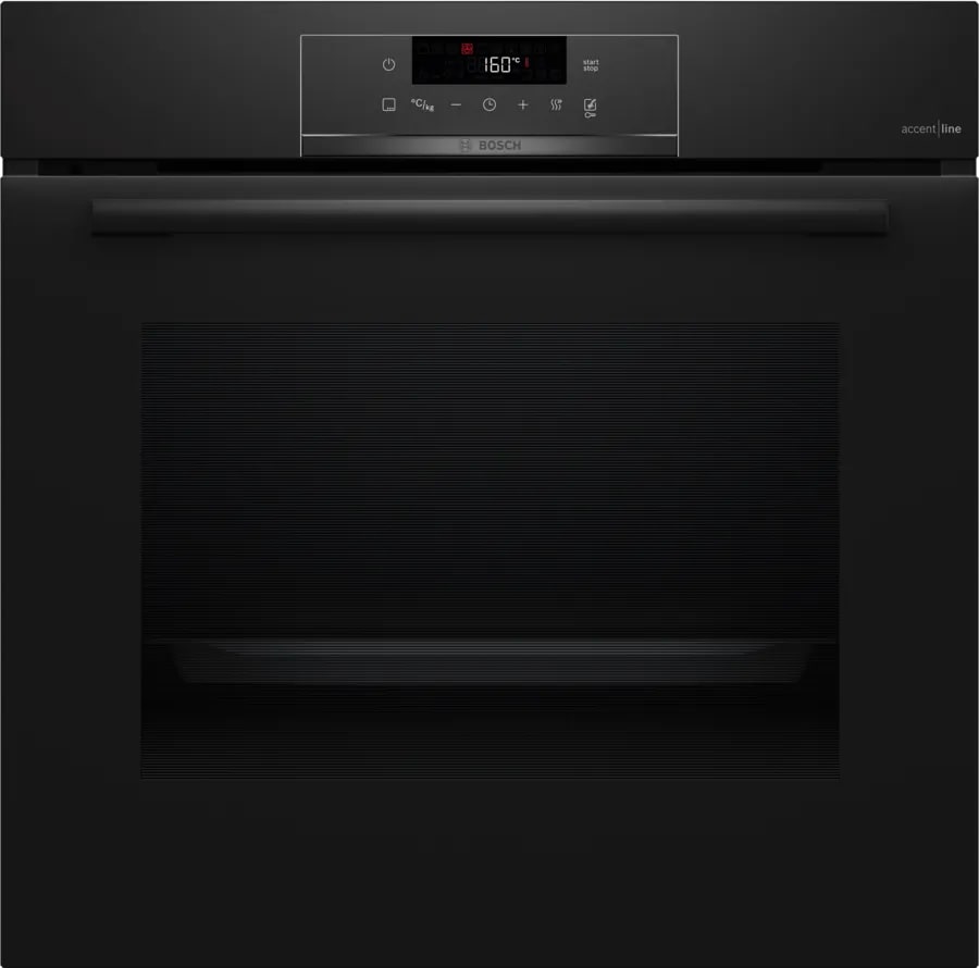 Пиролитическая очистка в духовых шкафах Bosch — это выжигание всех органических загрязнений, которые остаются в камере после приготовления пищи. При этом дверца духовки блокируется, а температура в камере поднимается до 500 градусов. Оставшийся после очистки пепел можно вытереть влажной губкой.