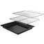 В стандартную комплектацию любого духового шкафа входят один или два противня — эмалированных или с антипригарным покрытием — и решетка. Единственный противень, как правило, имеет низкие бортики и предназначается для приготовления выпечки. Если духовка комплектуется двумя противнями, то второй отличается более высокими бортиками — его можно использовать для запекания мяса, птицы, овощных блюд. На решетке в духовке, не оснащенной грилем, обычно устанавливаются формы для запекания — стальные, керамические или стеклянные. В духовках премиум-класса количество противней может быть увеличено: к стандартному комплекту добавляются противни с перфорацией для мяса, специальные поддоны для сбора выделившегося сока.
