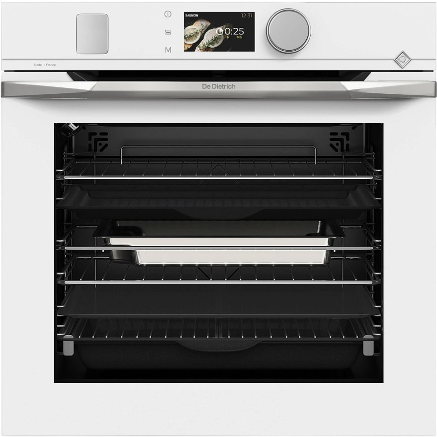 Количество режимов работы в духовом шкафу Де Дитрих: 24. В число доступных программ входят: классический нагрев, конвекция, дополнительное использование пара, гриль для создания хрустящей корочки, сушка для овощей и фруктов, и другие. Помимо основных программ воспользуйтесь специальными возможностями этого прибора: размораживанием продуктов, чтобы сократить время на подготовку; и другими. Тип гриля в этой модели — электрический.