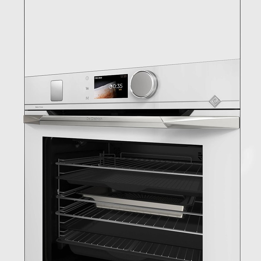 Готовьте свои лучшие блюда и пробуйте новые рецепты с духовым шкафом De Dietrich DOR4747W! Стандартные размеры и большой объем внутренней камеры — выбор тех, кто много готовит для семьи или частых праздничных встреч с друзьями. Желательно заранее продумать расположение такой модели в кухонном гарнитуре.