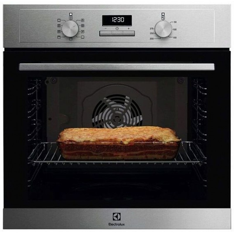Готовьте свои лучшие блюда и пробуйте новые рецепты с духовым шкафом Electrolux EOF3F00X! Стандартные размеры и большой объем внутренней камеры — выбор тех, кто много готовит для семьи или частых праздничных встреч с друзьями. Желательно заранее продумать расположение такой модели в кухонном гарнитуре.