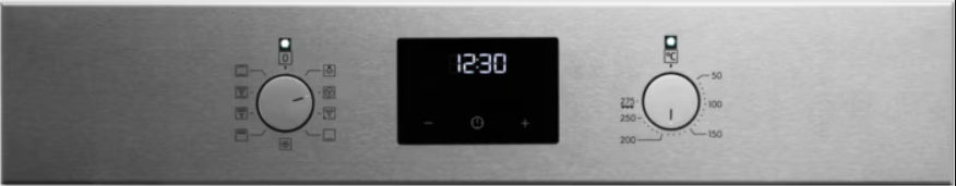 Особенности дизайна и внешней панели управления — также важный пункт при выборе духовки на кухню. В данной модели нужно обратить внимание на цвет — нержавеющая сталь,