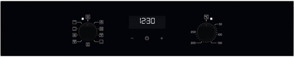 Особенности дизайна и внешней панели управления — также важный пункт при выборе духовки на кухню. В данной модели нужно обратить внимание на цвет — черный,