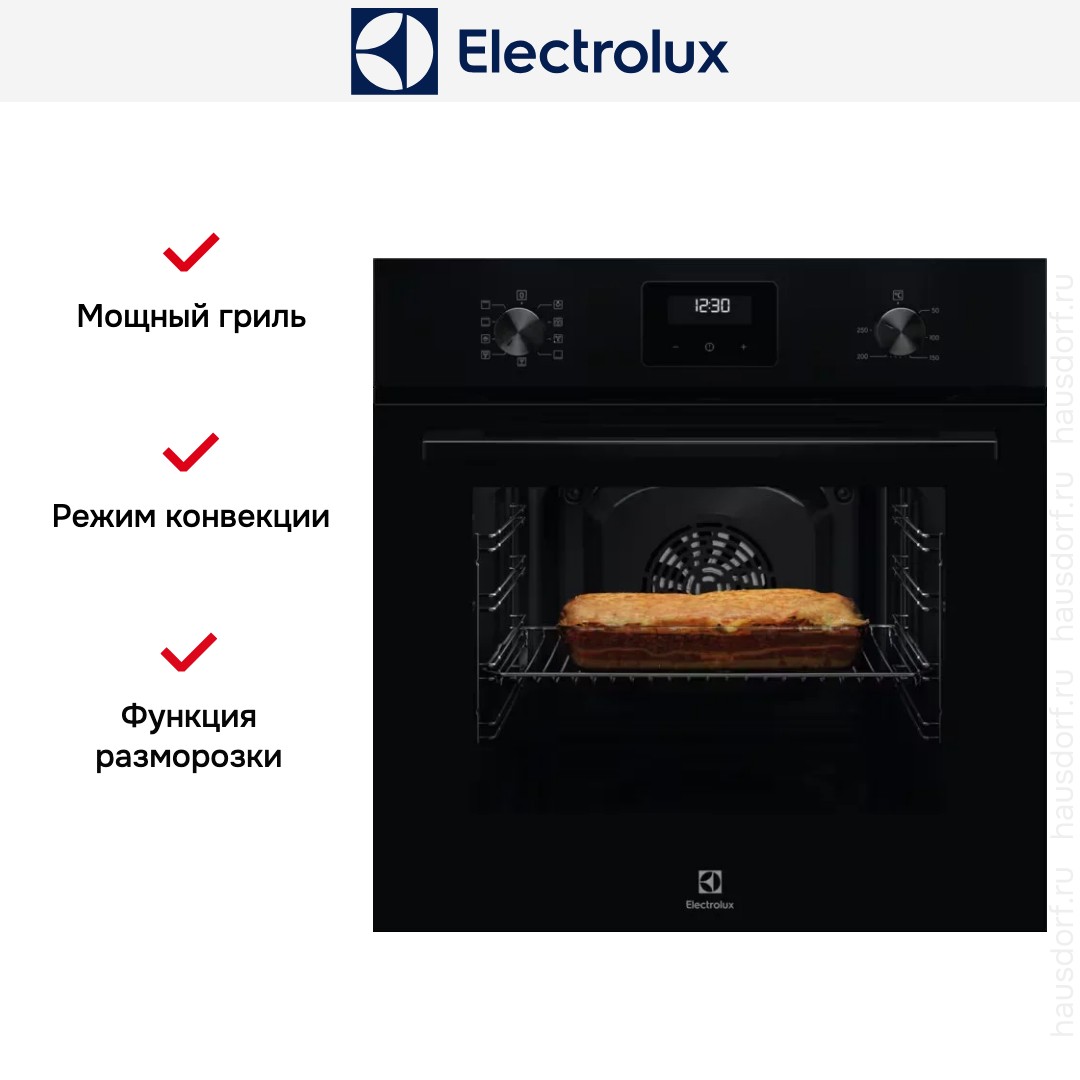 Готовьте свои лучшие блюда и пробуйте новые рецепты с духовым шкафом Electrolux LOF3H10BK! Стандартные размеры и большой объем внутренней камеры — выбор тех, кто много готовит для семьи или частых праздничных встреч с друзьями. Желательно заранее продумать расположение такой модели в кухонном гарнитуре.