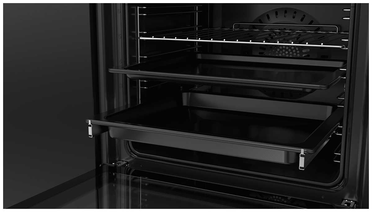 В стандартную комплектацию любого духового шкафа входят один или два противня — эмалированных или с антипригарным покрытием — и решетка. Единственный противень, как правило, имеет низкие бортики и предназначается для приготовления выпечки. Если духовка комплектуется двумя противнями, то второй отличается более высокими бортиками — его можно использовать для запекания мяса, птицы, овощных блюд. На решетке в духовке, не оснащенной грилем, обычно устанавливаются формы для запекания — стальные, керамические или стеклянные. В духовках премиум-класса количество противней может быть увеличено: к стандартному комплекту добавляются противни с перфорацией для мяса, специальные поддоны для сбора выделившегося сока.
