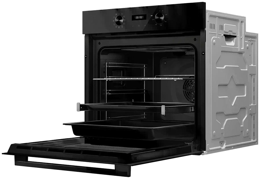 Особенности дизайна и внешней панели управления — также важный пункт при выборе духовки на кухню. В данной модели нужно обратить внимание на цвет — черный,