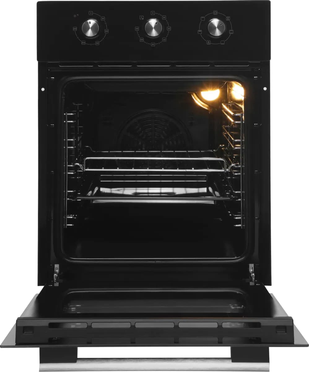 Как известно, стандартная ширина кухонной тумбы составляет около 60 см — поэтому за стандартную ширину встраиваемого духового шкафа принимают 59,5 см. Такие духовки имеют по 3–4 уровня приготовления, в них можно приготовить достаточно объемные блюда. Минимальное значение ширины духовки также соотносится с размерами тумбы для встраивания — оно составляет 44–45 см. Это хороший выбор для небольшой кухни, однако узкие духовые шкафы имеют свои недостатки — в частности, в них невозможно приготовить большой пирог или торт, запечь целый окорок, индейку или большую рыбу.
