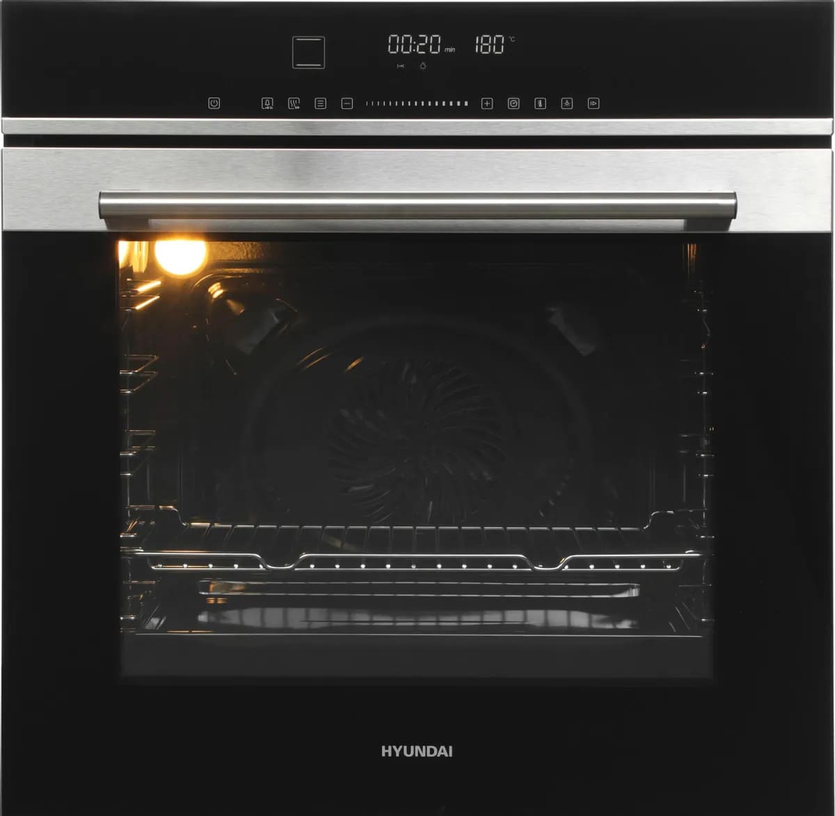 Количество режимов работы в духовом шкафу Хендай: 13. В число доступных программ входят: классический нагрев, верхний нагрев, нижний нагрев, конвекция, гриль для создания хрустящей корочки, и другие. Помимо основных программ воспользуйтесь специальными возможностями этого прибора: размораживанием продуктов, чтобы сократить время на подготовку; и другими. Тип гриля в этой модели — электрический.