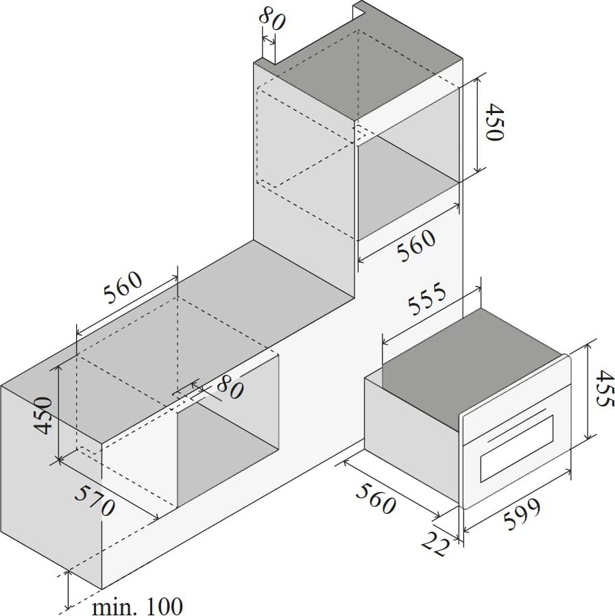 При установке духового шкафа в тумбу необходим также зазор между прибором и полом не менее 8–10 см. Если же она устанавливается в колонну, следует убедиться, что при открывании дверцы в лицо не будет ударять горячий воздух, а панель управления легко доступна. Кроме того, необходимо обеспечить свободный доступ ко всем розеткам и кабелям — они не должны размещаться непосредственно за задней стенкой духового шкафа.