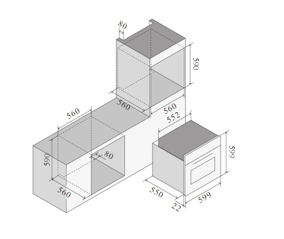 Размеры ниши для встраивания духового шкафа определяются, исходя из габаритов самого устройства. Стандартные модели обычно без труда устанавливаются в нишу шириной около 560 мм, высотой около 595 мм и глубиной примерно 550 мм. Следует помнить, что фасад устройства должен иметь большие размеры, чем величина ниши.
