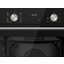 Внешний облик выполнен в строгом черном цвете и сочетает гладкое стекло с металлическими вставками. Такой дизайн легко впишется в интерьер встраиваемой кухни и подчеркнет минимализм без лишних деталей. Откидная дверца с двумя стеклами выглядит аккуратно и обеспечивает дополнительную теплоизоляцию, а доводчик делает закрытие безопасным и тихим. Внутреннее освещение позволяет контролировать процесс готовки без открытия дверцы, что сохраняет равномерность температуры.