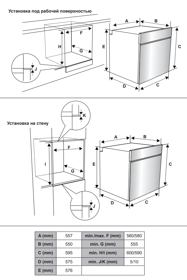 Ко всем моделям прилагаются подробные инструкции по установке, где указаны точные размеры ниши для каждой конкретной духовки.